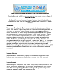 You are a part of a collegewide effort to increase access to education and empower students through "open pedagogy." Open pedagogy is a "free access" educational practice that places you - the student - at the center of your own learning process in a more engaging, collaborative learning environment. The ultimate purpose of this effort is to achieve greater social justice in our community in which the work can be freely shared with the broader community. This is a renewable assignment that is designed to enable you to become an agent of change in your community through the framework of the United Nations Sustainable Development Goals (SDGs). For this work, you will integrate the disciplines of Leadership, Humanities, and Mathematics to achieve SDG #4: Quality Education. With a focus on Target 4.7: By 2030, ensure that all learners acquire the knowledge and skills needed to promote sustainable development, including, among others, through education for sustainable development and sustainable lifestyles, human rights, gender equality, promotion of a culture of peace and non-violence, global citizenship and appreciation of cultural diversity and of culture’s contribution to sustainable development.