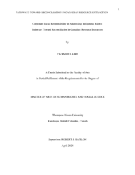 than an opportunity to genuinely collaborate with communities in a commitment to reconciliation. In an industry that operates around profit-centric performance based on the commodification of land, a basis has been set for relationship building that is predominantly transactional. The transactional approach to social engagement perpetuates a neocolonial power differential between the extraction industry and First Nations, which exposes industry monopolizing power through a patrimonial role as expert. Consequently, Indigenous inclusion takes the form of espoused industry practices rather than recognizing the unique insight of each Nation and their relationship with the land. This study, therefore, considers how CSR strategy can alternatively protect, respect, and empower Indigenous rights in tandem with long-term economic security. Additionally, it will provide recommendations on how, through collaboration with Indigenous communities, companies can move beyond transactional consultation to transformational.